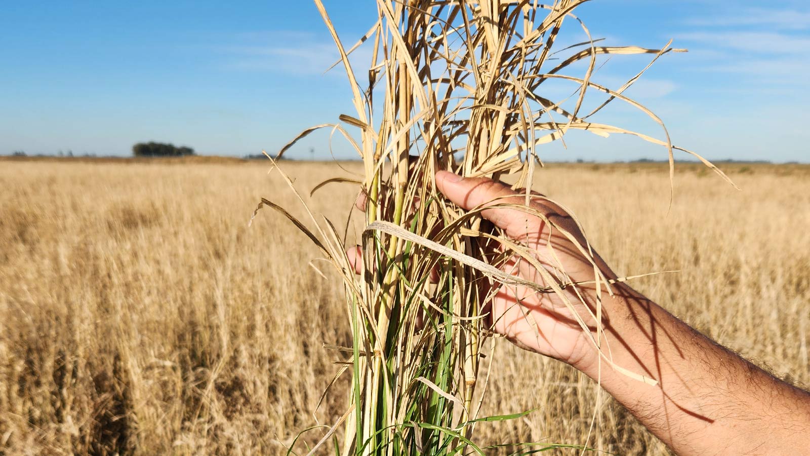 Megamix con follaje muerto por heladas y protegiendo nuevos macollos, Chapicuy, Salto.