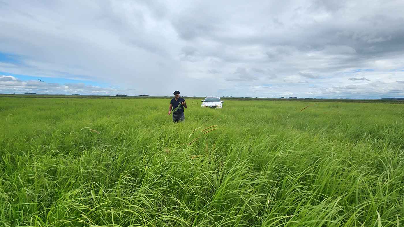 Comentarios: Sembrada en noviembre 2022, se implantó en plena Niña, dio 3 pastoreos durante el verano y compitió muy bien mostrando baja presencia de Capin annoni en zona de alta incidencia.